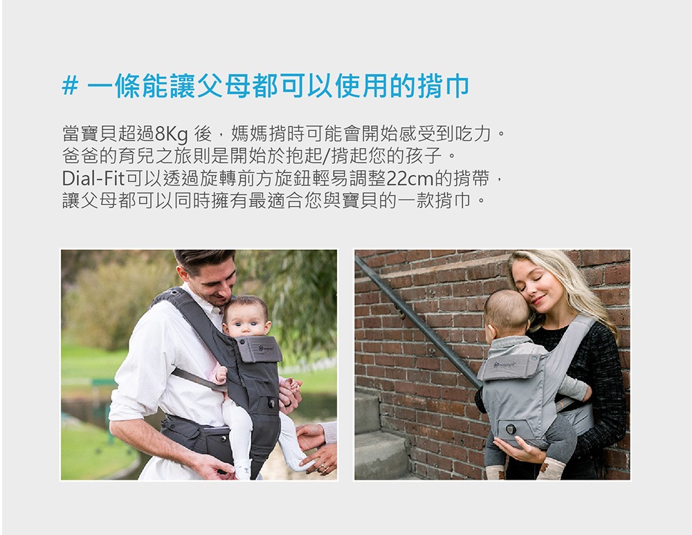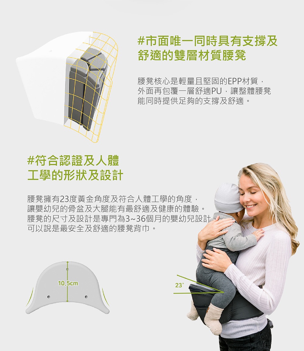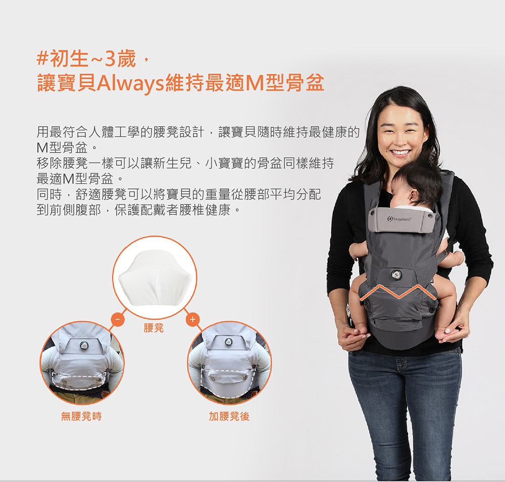 2021年全新升級推薦款,來自韓國專為新生兒設計的嬰兒背帶,從0到3個月都適用,透氣、輕量再進化。依據嬰幼兒發展階段變換3種使用模式,可獨立當嬰兒背帶、腰凳背巾以及嬰兒腰凳揹巾,並有市面唯一旋鈕微調,讓爸媽快速調整兩側肩帶,找到最適合寶寶腰及骨盆的鬆緊位置,讓寶寶的脊椎維持在最舒服的C字形,同時維持骨盆在最安全的M字腿。