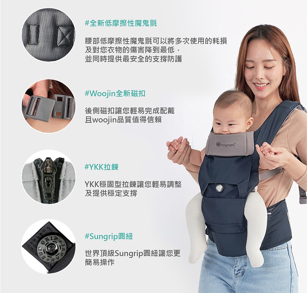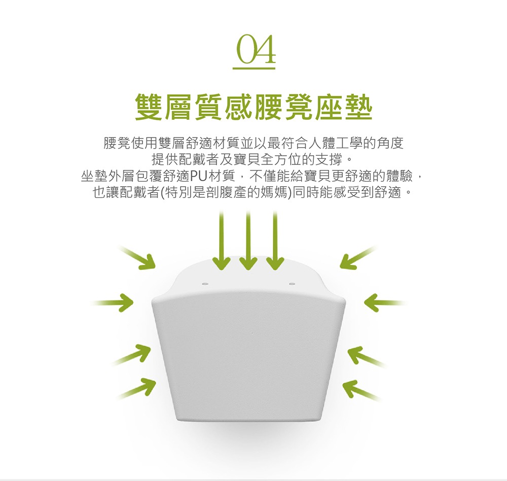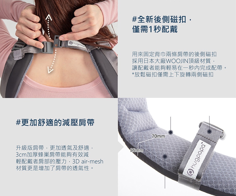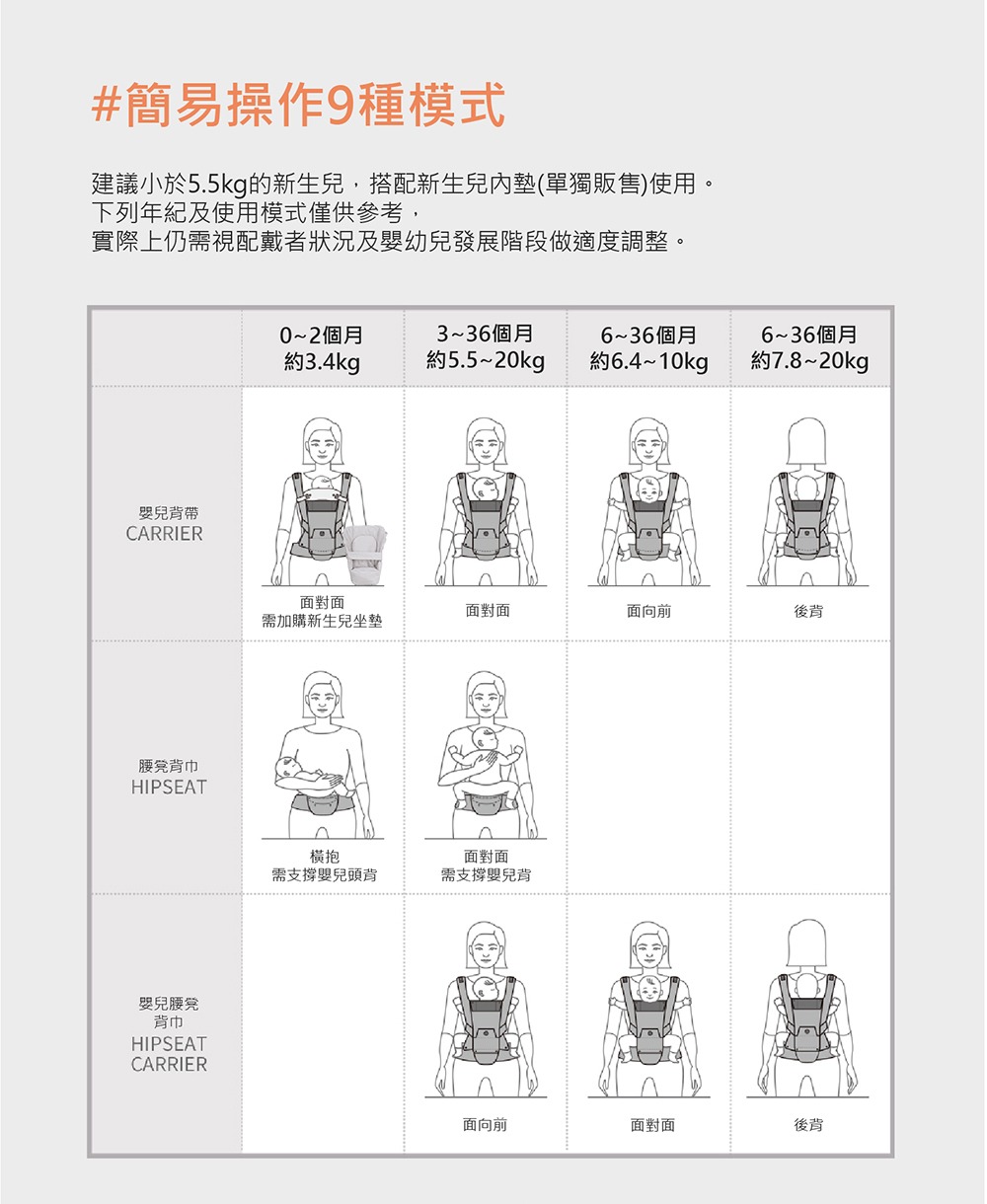2021年全新升級推薦款,來自韓國專為新生兒設計的嬰兒背帶,從0到3個月都適用,透氣、輕量再進化。依據嬰幼兒發展階段變換3種使用模式,可獨立當嬰兒背帶、腰凳背巾以及嬰兒腰凳揹巾,並有市面唯一旋鈕微調,讓爸媽快速調整兩側肩帶,找到最適合寶寶腰及骨盆的鬆緊位置,讓寶寶的脊椎維持在最舒服的C字形,同時維持骨盆在最安全的M字腿。
